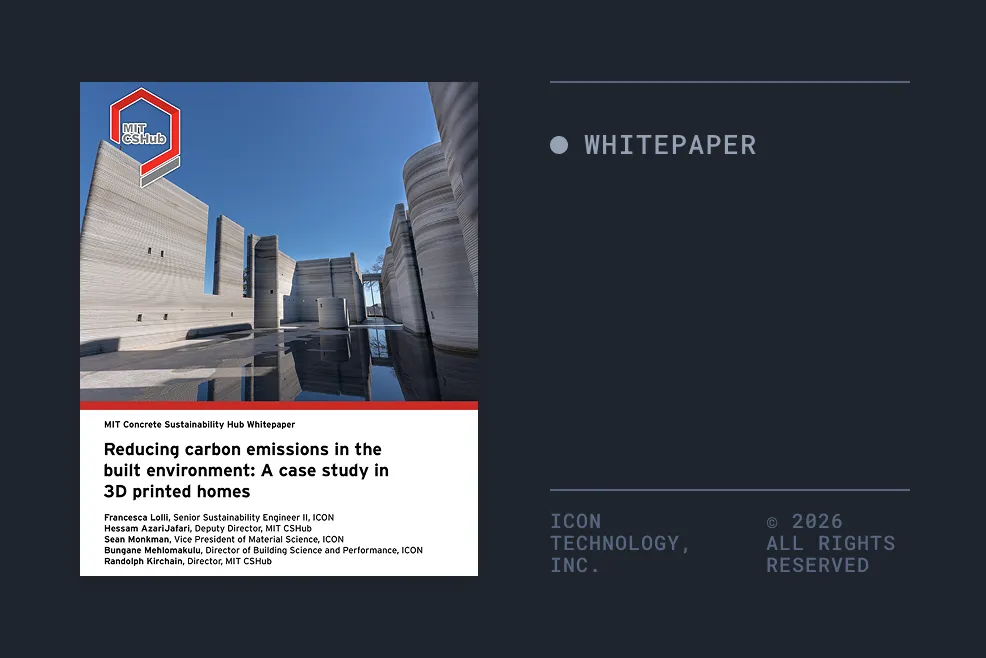 Combined with ICON’s robotic wall system, FormCrete delivers a scalable, low-carbon alternative to stick-framed construction, validated by a 2024 MIT study showing reduced embodied and operational impacts.