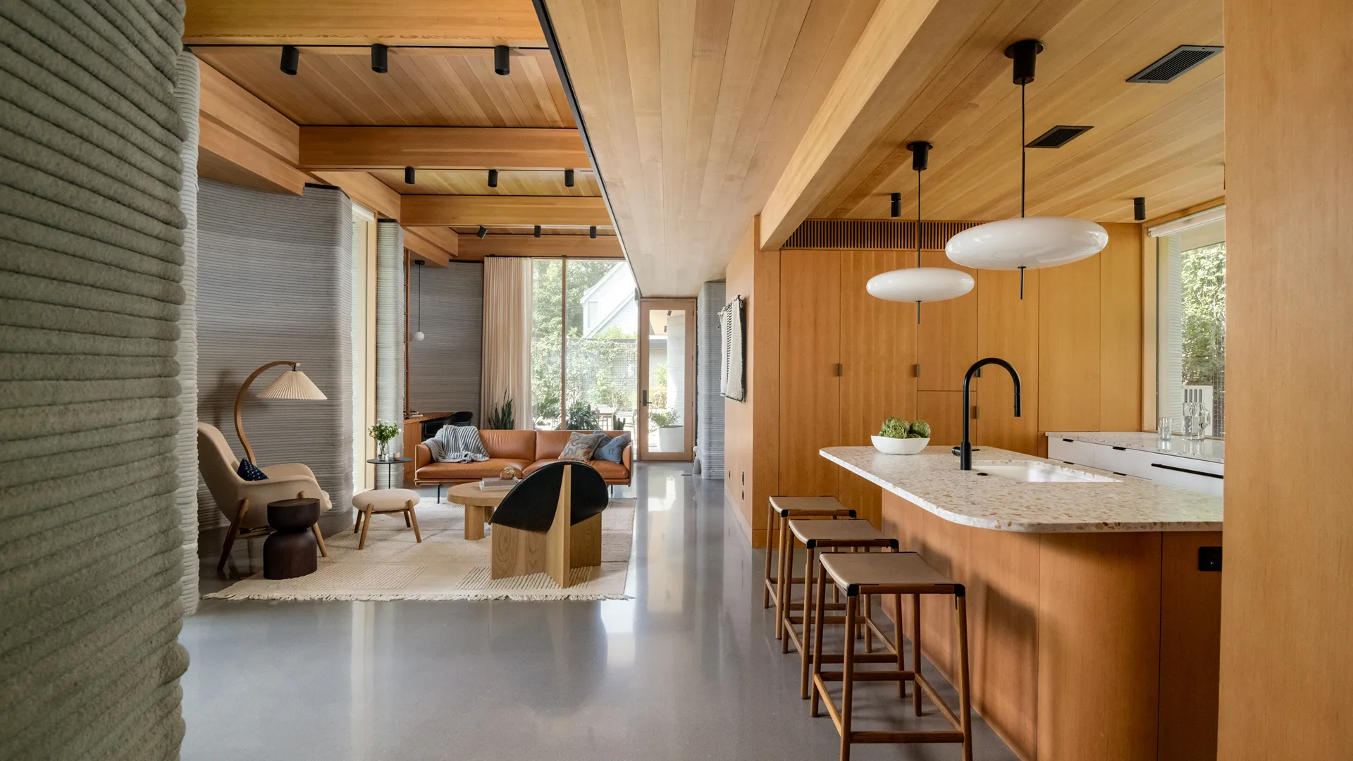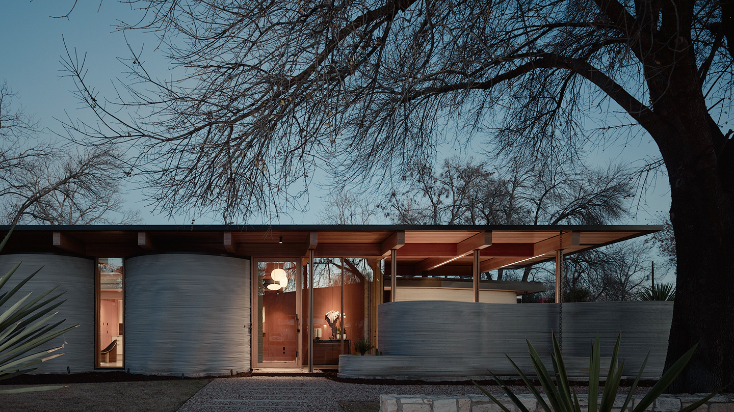 House Zero features ICON’s resilient 3D-printed wall system, which replaces a building system traditionally made up of multiple steps saving time, waste and cost.