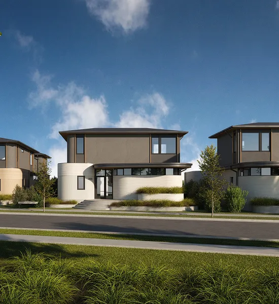 Designed by the award-winning Michael Hsu Office of Architecture, these homes feature innovative 3D-printed construction on the first floor, seamlessly transitioning to traditional building on the second.