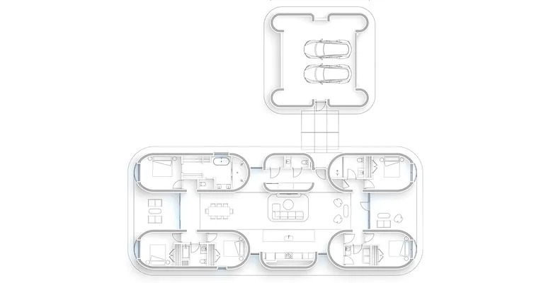 Seamless yet dynamic floor plans that achieve a balance between public and private spaces. The design intent seamlessly integrates spatial fluidity and luminosity, creating an inviting yet dynamic living environment